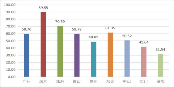 2018 年珠三角9市工业经济创新驱动发展指数 图表来源:《粤港澳大湾区工业经济创新驱动发展研究》