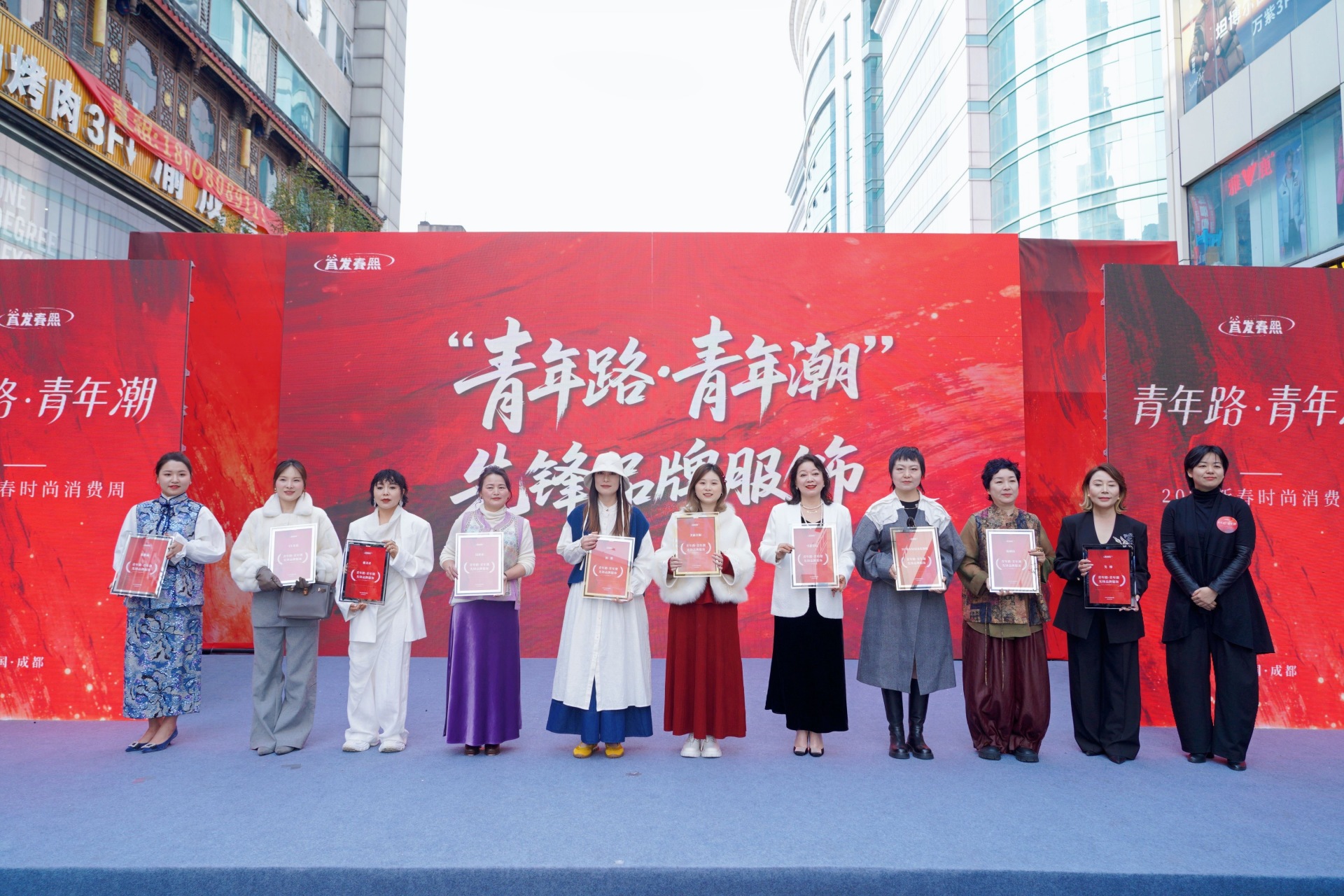 启动仪式上,备受瞩目的“青年路·青年潮”先锋品牌服饰揭晓。10位脱颖而出的品牌主理人携标志性作品华丽登场,并获颁权威认证证书。现场还发布了《青年路焕新消费指南》。“春熙路+青年路”商圈深度联动,九龙服装、锦绣童装精品城、万紫羽绒服装城、尚都服饰广场、明都服装批发城等5大商场围绕青年路首发一系列特色消费活动,打造“商场内外联动”的新春购新衣展销盛会。