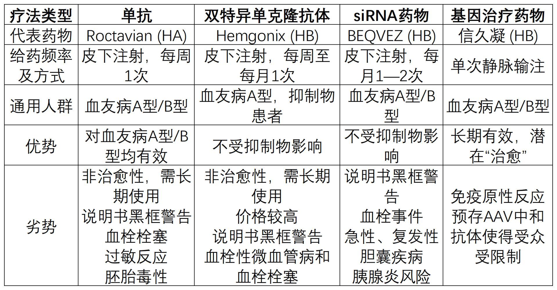 据吴润晖介绍,非因子药物方面,国内已经有了双特异性单抗FVIII因子模拟物的艾美赛珠单抗、再平衡药物马塔西单抗和Fitusiran。非因子药物治疗的特点是皮下注射、每周到每2月一次,止血效果好,安全性有保证,它们的出现已经从根本上改变了出血表型,让血友病正在从一种突发出血性疾病向需要长期管理疾病转变。