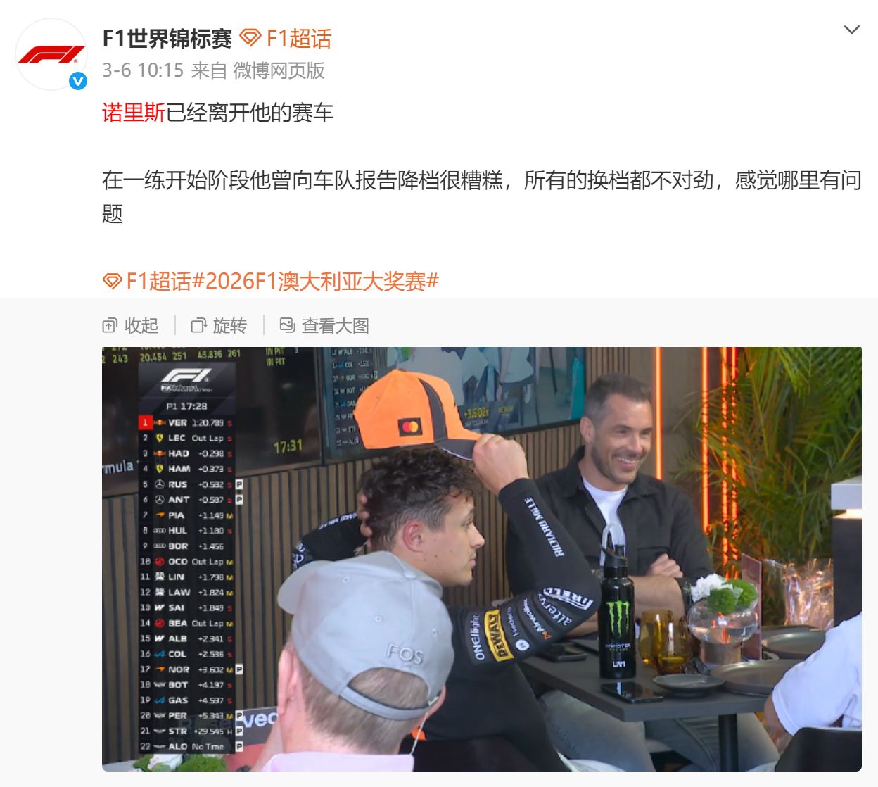 图片来源:新浪微博(@F1世界锦标赛)