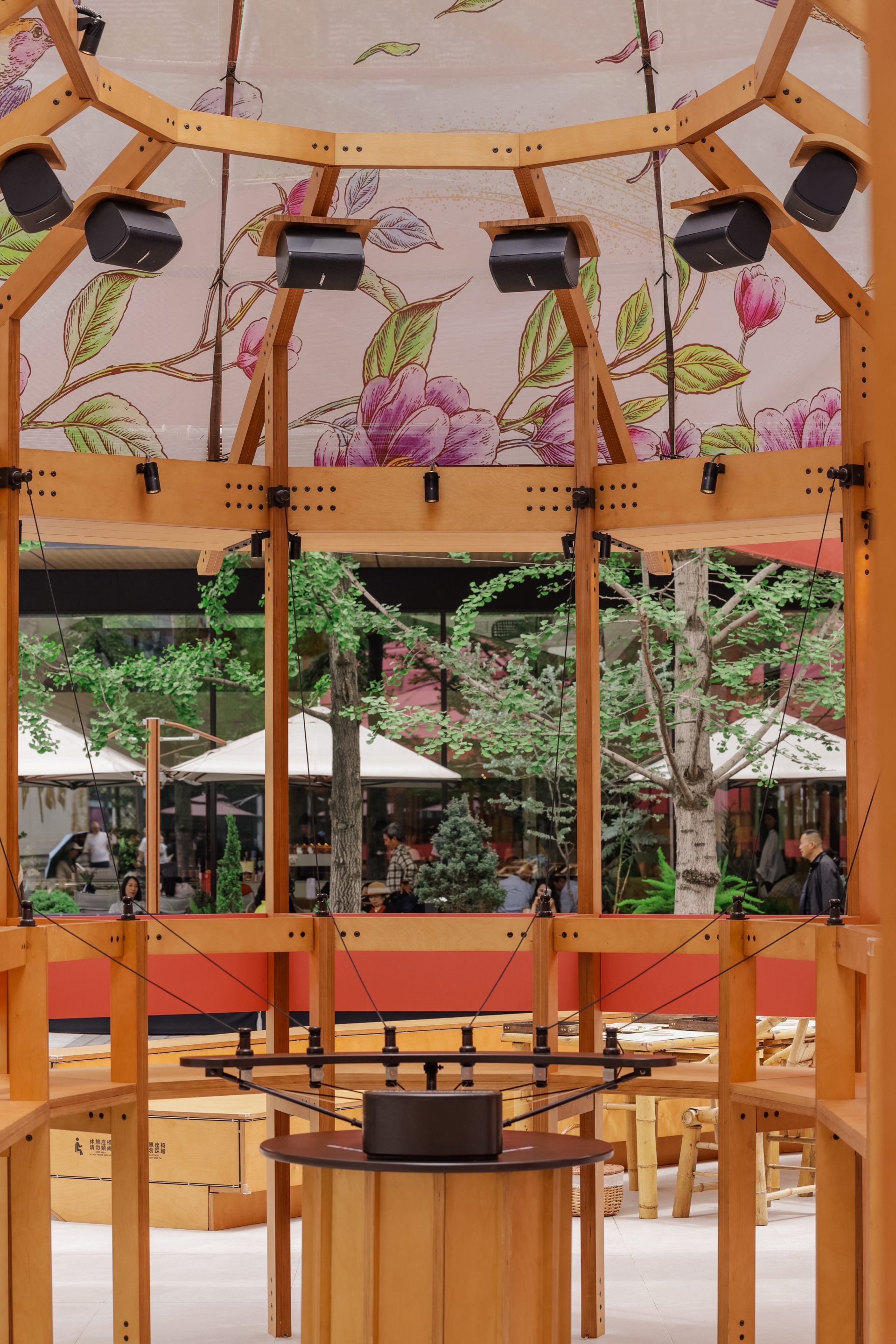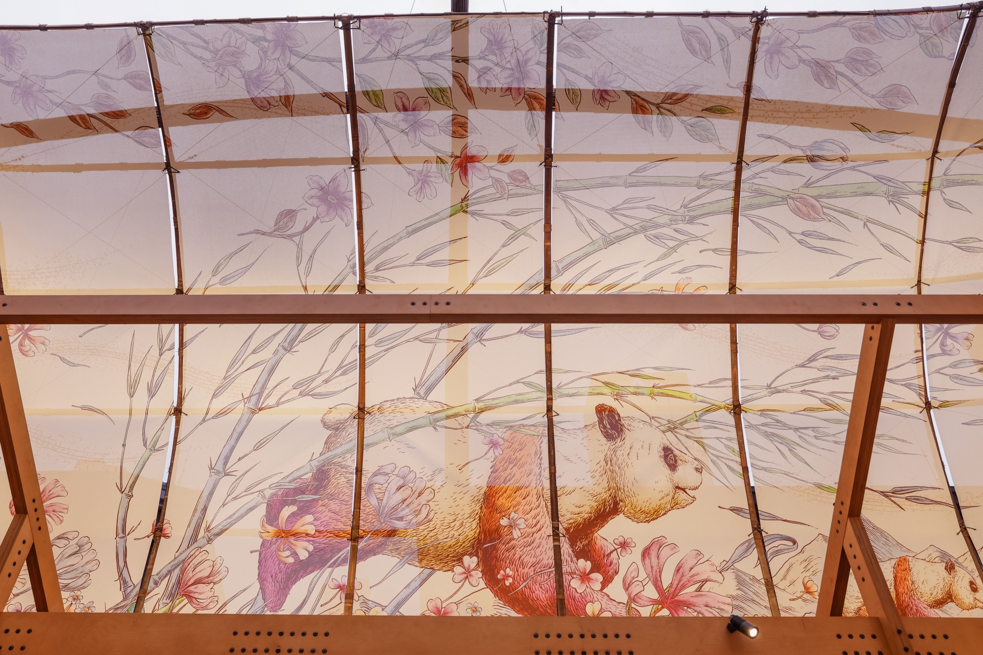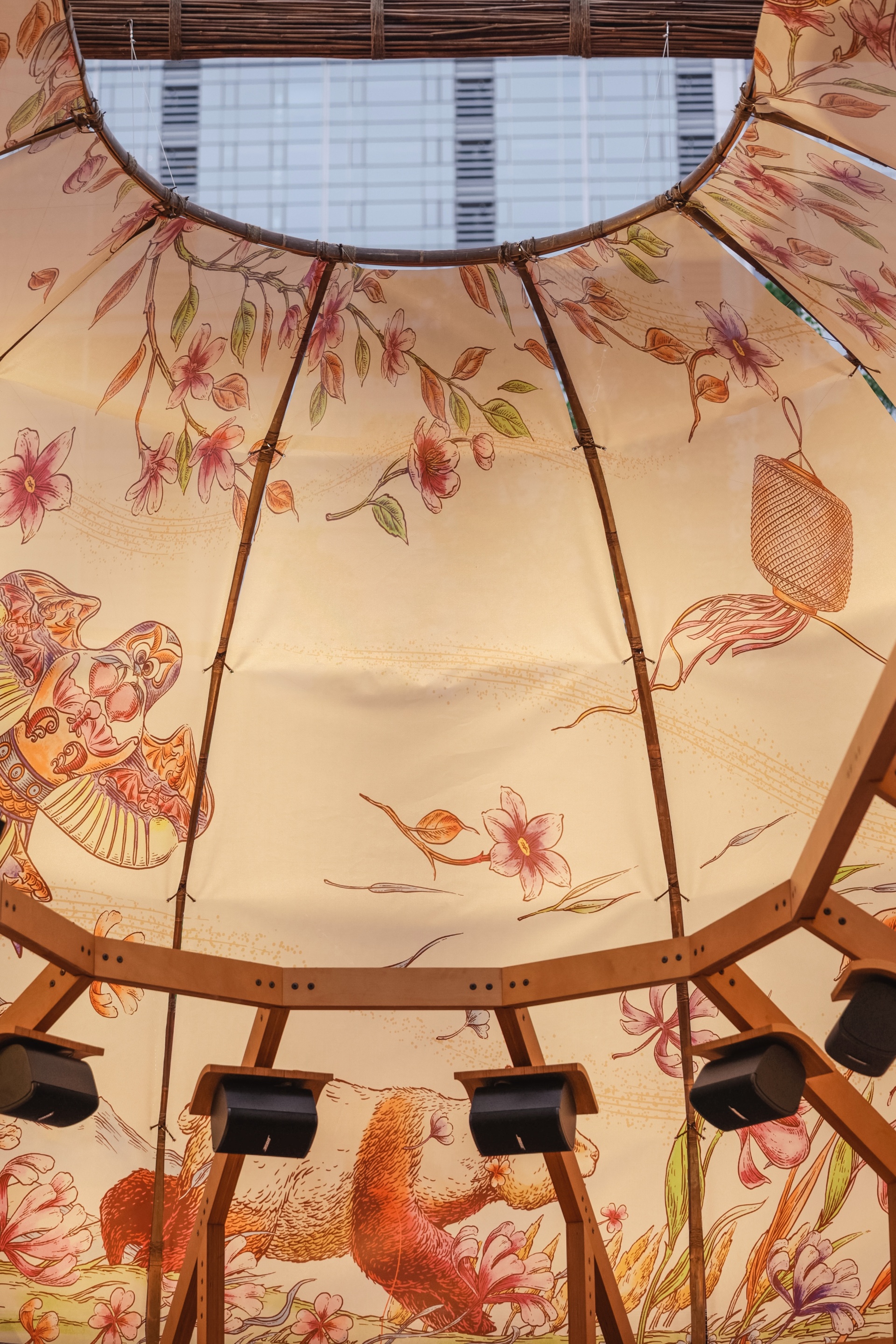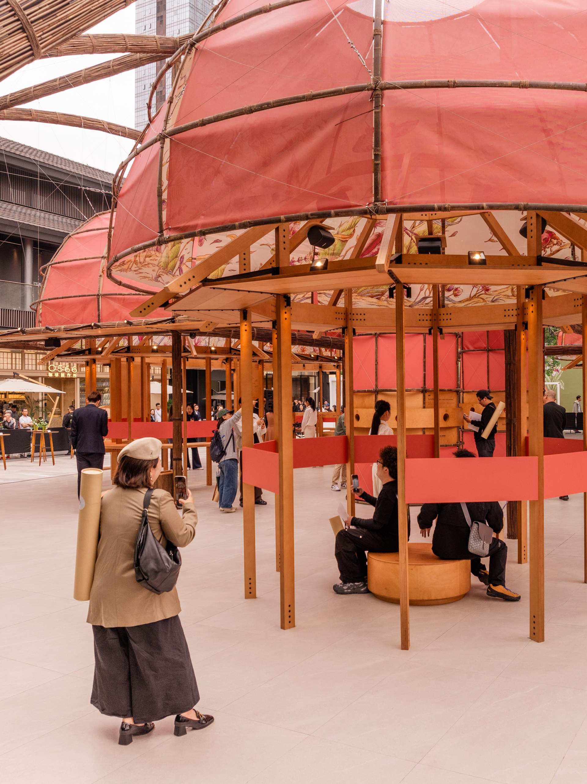 本次大型艺术装置的创作,建筑师谢德超取竹为弦,以传统风筝工艺为灵感构筑起大型展览空间,步入其中即可沉浸式感受竹节错落、光影交织的呼吸感;